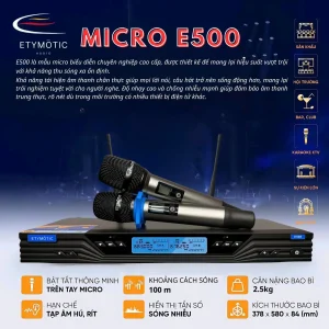 Nhờ những đặc điểm này, micro không dây Micro Etymotic E.200 là một sự lựa chọn lý tưởng cho các buổi karaoke, sự kiện, hay bất kỳ hoạt động nào yêu cầu âm thanh chất lượng và sự tiện lợi.